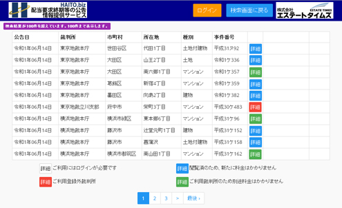 裁判所で公告された配当要求終期等の公告情報を一覧にしてスピーディにお届けします。毎日公告される東京地方裁判所本庁では毎日午前中にメールまたはFAXでお届けするとともに、当サイトに掲載しております。その他公告日の定まった横浜地方裁判所本庁、千葉地方裁判所本庁などの裁判所の公告物件も公告当日にお知らせしています。