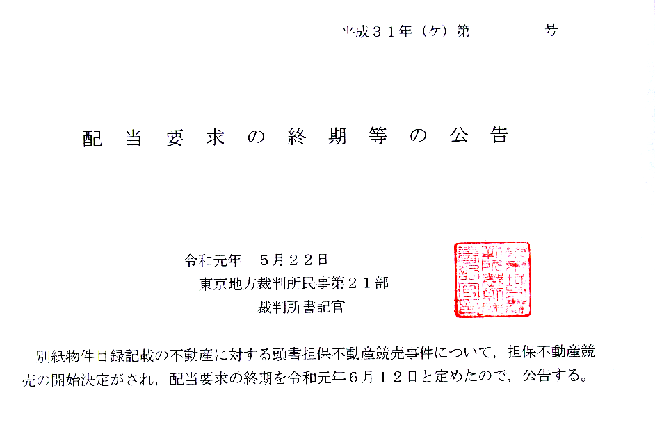 配当要求終期等の公告の物件とは